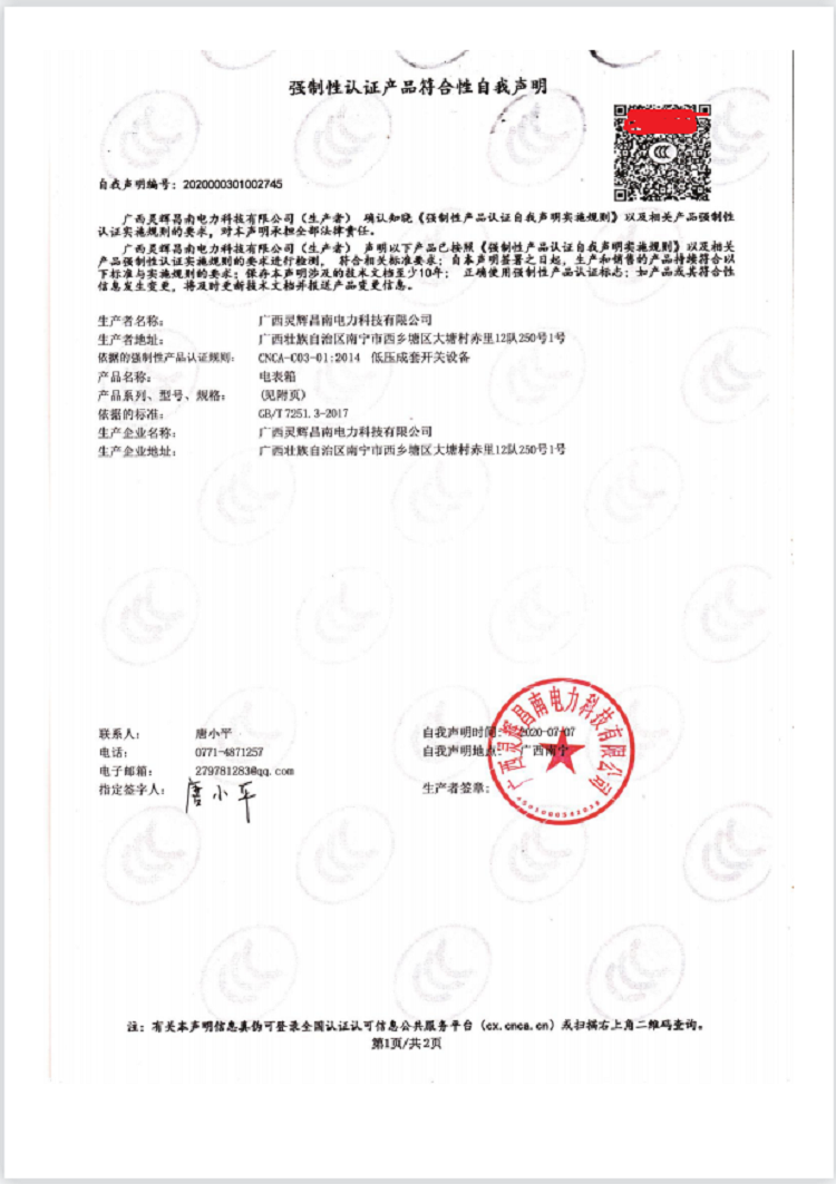 配電箱(強(qiáng)制性認(rèn)證產(chǎn)品符合性自我聲明)001