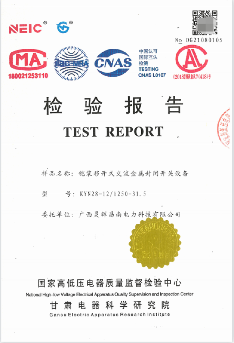 抽出式開關(guān)柜(型式試驗(yàn)報(bào)告)