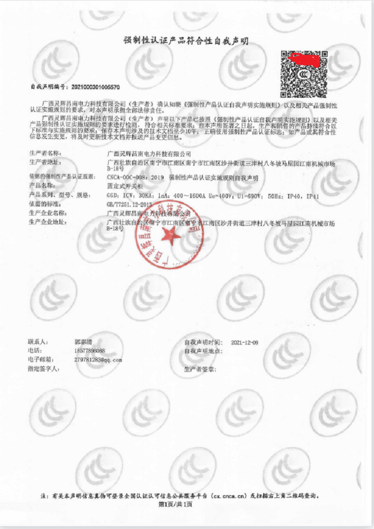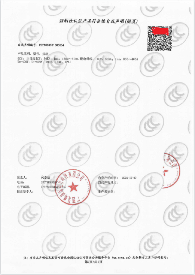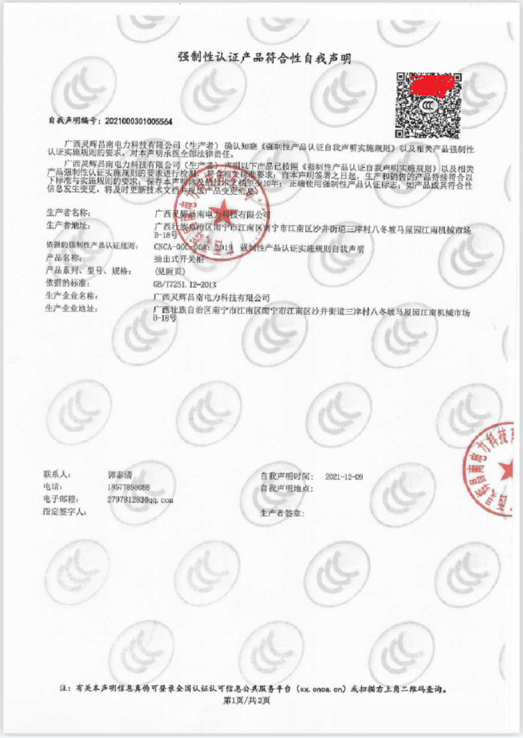 抽出式開關(guān)柜(強(qiáng)制性認(rèn)證產(chǎn)品符合性自我聲明)001