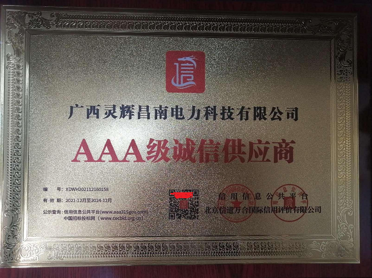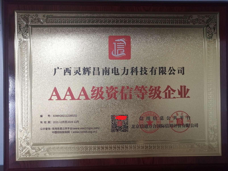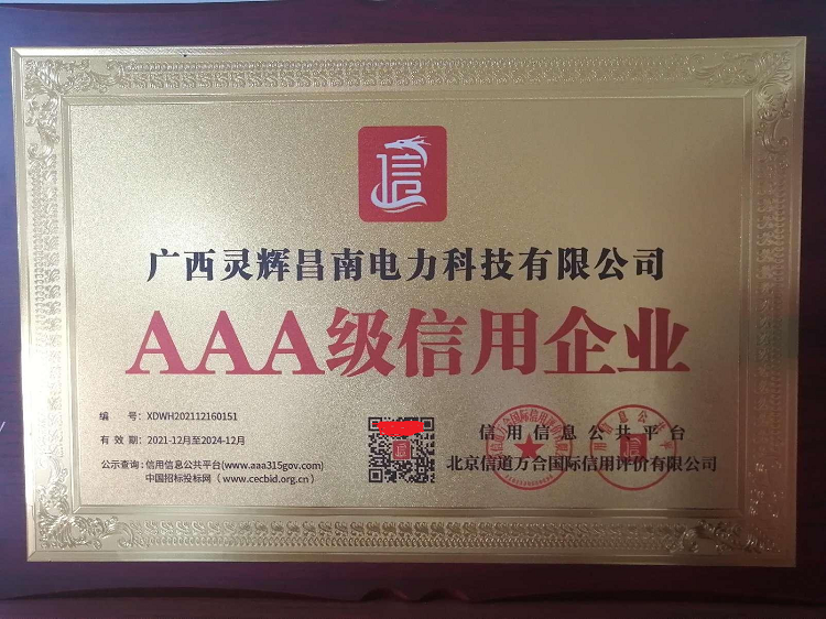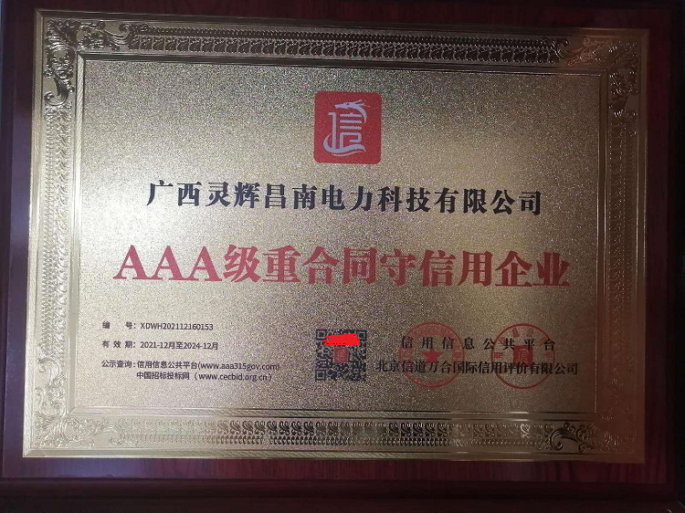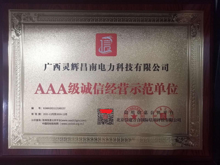 AAA級(jí)誠(chéng)信經(jīng)營(yíng)示范單位