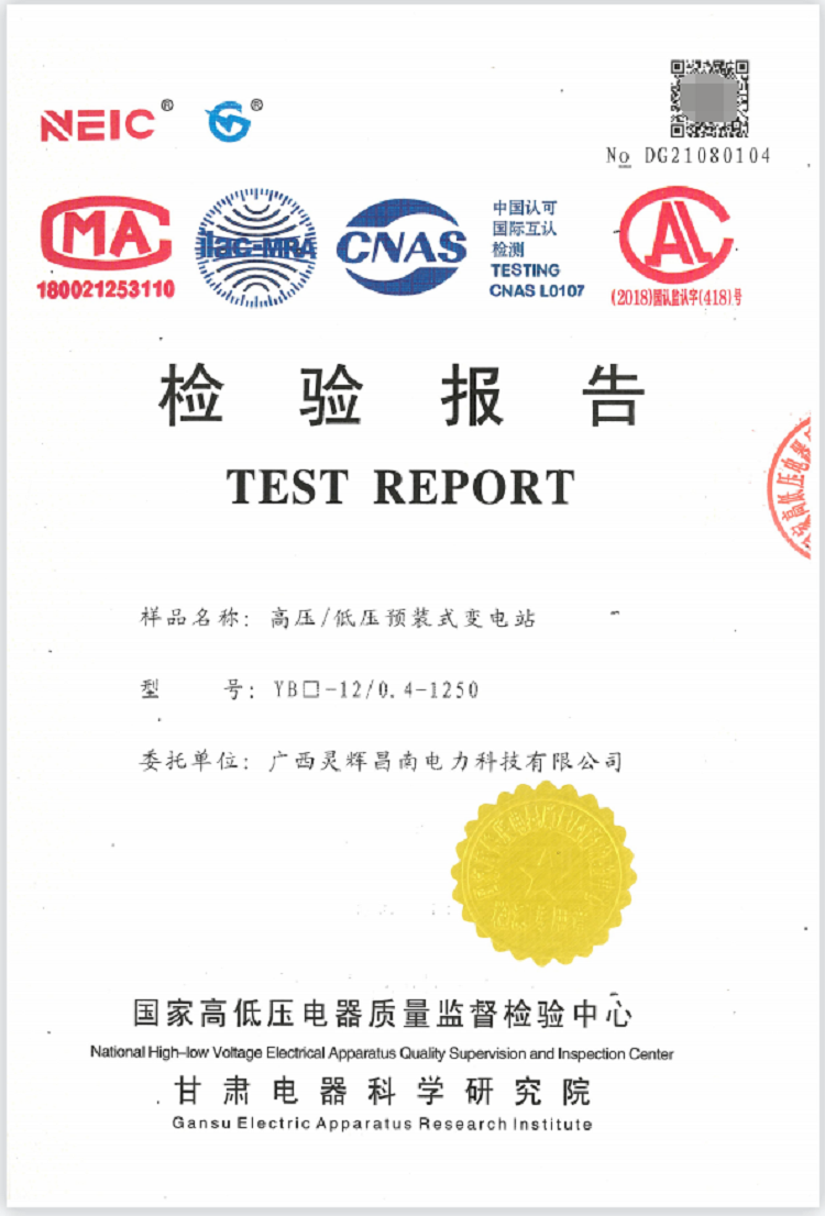 高壓、低壓預(yù)裝式變電站(檢驗(yàn)報(bào)告)