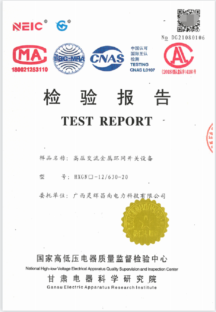 高壓交流金屬環(huán)網(wǎng)開(kāi)關(guān)設(shè)備(檢驗(yàn)報(bào)告)